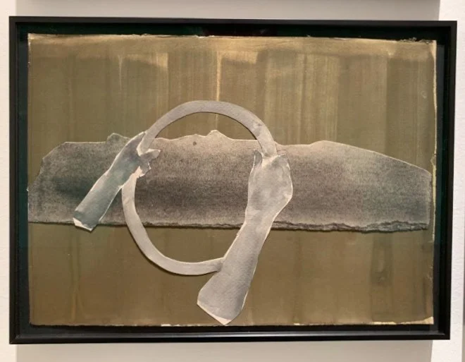 On entering the impressive main gallery at Butler Gallery through an incongruously small doorway, the deep hum of an air conditioner can be heard, creating a somehow sympathetic soundscape for Ciarán Murphy’s enigmatic paintings, which poke atmospheric holes in the precious white walls of the gallery. This hum is soon forgotten, surrounded by the 20-odd bareback paintings and framed collages, the latter being the generative paper tableaux for Murphy’s paintings.