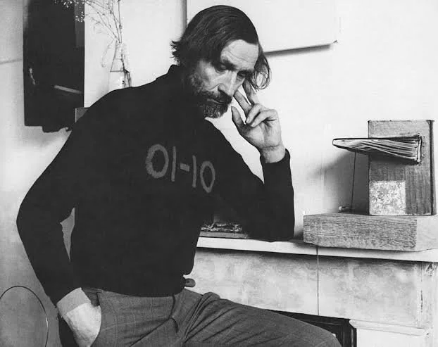 John Latham (1921–2006) was a pioneer of British conceptual art, who, through painting, sculpture, performances, assemblages, films, installation and extensive writings, fuelled controversy and continues to inspire. A visionary in mapping systems of knowledge, whether scientific or religious, he developed his own philosophy of time, known as ‘Event Structure.’ In this doctrine he proposed that the most basic component of reality is not the particle, as implied by physics, but the ‘least event,’ or the shortest departure from the state of nothing. The entire universe is to be viewed as a system of events in time, rather than objects in space. Thus, for Latham all artworks were considered events and were activated as such through diverse processes ranging from spraying, chewing, shredding or spitting to simply declaring. For instance, his seminal 'skoob' happened in 1966, while Latham was teaching at St Martins School of Art. Latham borrowed a copy of Clement Greenberg’s recently published art history opus, Art and Culture, from the school’s library, and invited his students to join him in a ritualistic ceremony: the chewing and spitting out of select pages of the book. Latham decanted the vestiges into a phial, doused it in acid and yeast, and fermented it for a year, then returning the liquid he described as ‘Essence of Greenberg’ to the school. The Spit and Chew event poked at Greenberg’s emphasis on space and form, which was contradictory to Latham’s focus on the function of time in art, and cemented itself as a key example of conceptual art. The resulting artwork, Spit and Chew: Art and Culture (1966-69) is now owned by the Museum of Modern Art in New York. Whether in his early spray paintings and One-Second Drawings, to the book reliefs he created in the 1960s, the roller paintings of the 1970s and the late glass towers works which incorporated bits of all theorems, John Latham maintained steadfast devotion to exploring the most complex cosmological ideas and questioning the traditional notions and structures of art, science and philosophy.