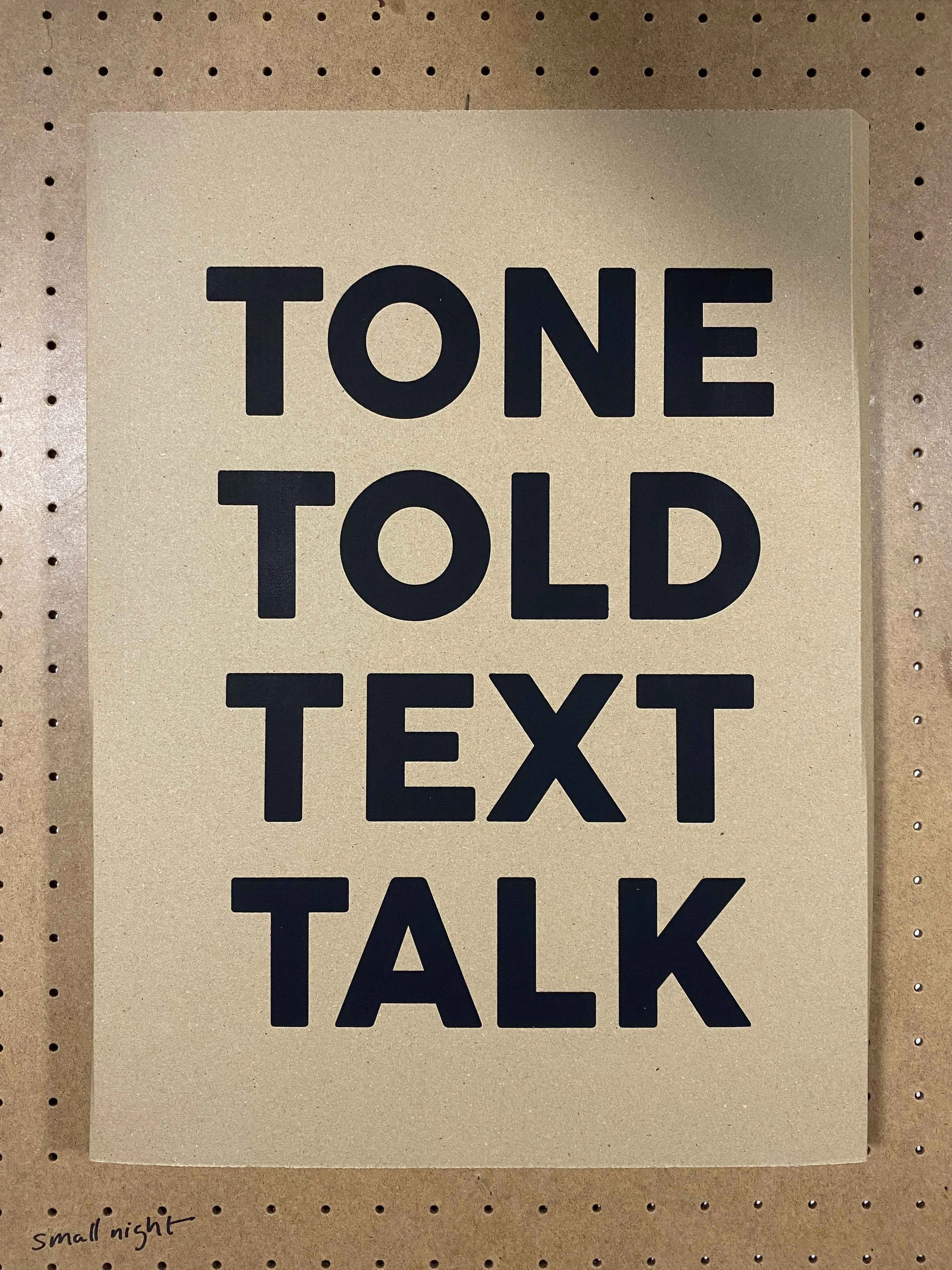 “Small Night” infers the crunch of the all-nighter, the self-inflicted deadlines, the chase of time to find a small place to work outside of big daily life. Small Night is a product of a love and nostalgia for printed artist pulp, and a deep criticism of our online dependent and less physical art scene.