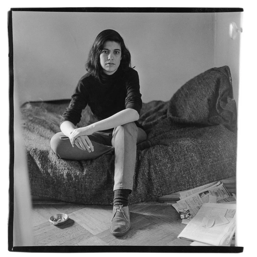 📸Susan Sontag alone on a bed. N.Y.C. 1965. Photograph by Diane Arbus